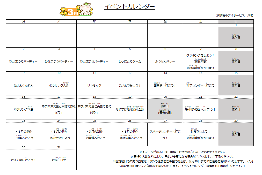 成助の月間スケジュール